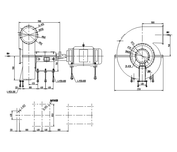 Installation Drawing of AI600-800 Single-stage Low Speed Centrifugal Blower
